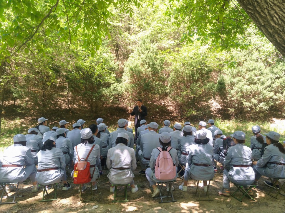 每到一處革命舊址,我們都要坐在小板凳上,聆聽(tīng)各個(gè)老師的悉心教學(xué),仿佛回到了那個(gè)年代,即使風(fēng)吹日曬,即使條件艱苦,學(xué)習(xí)的熱情也永不退減。在張思德雕像下,郭隨萬(wàn)老師的《張思德及其為人民服務(wù)精神啟示》主題黨課,讓我們深刻理解了張思德精神的內(nèi)涵:對(duì)工作毫無(wú)怨言,勤勤懇懇踏踏實(shí)實(shí)工作的精神;對(duì)同志真心誠(chéng)意,處處與人為善,時(shí)時(shí)助人為樂(lè)的精神;對(duì)人民盡心盡力,一心一意為人民服務(wù)的精神。革命時(shí)期的共產(chǎn)黨員,他們?yōu)榱它h,為了人民,隨時(shí)可以奉獻(xiàn)自己的一切;他們就像“清涼山上的草一樣”,平凡、普通,思想?yún)s偉大、高尚。在楊家?guī)X的樹(shù)蔭下,霍雯老師的《延安時(shí)期水乳交融的黨群干群關(guān)系》主題黨課,生動(dòng)活潑地講述了延安時(shí)期黨中央及毛澤東等領(lǐng)導(dǎo)干部通過(guò)擁民、愛(ài)民、與人民群眾建立起水乳交融、血肉相連的關(guān)系,我們的革命才逐漸由弱到強(qiáng),由局部勝利到逐步取得全面勝利。在棗園的墻邊,劉金峰老師的《窯洞里有馬列主義》主題黨課,詼諧幽默的小故事講述了毛澤東在山溝溝里的窯洞中,領(lǐng)導(dǎo)全黨學(xué)馬列、用馬列,創(chuàng)作了大量馬克思主義中國(guó)化的著作的艱苦奮斗場(chǎng)景。如今我們?cè)谙硎芨锩鼊倮麑?shí)的時(shí)候,莫忘“又學(xué)習(xí),又玩?!?,莫忘踐行群眾路線(xiàn),莫忘全心全意為人民服務(wù)。